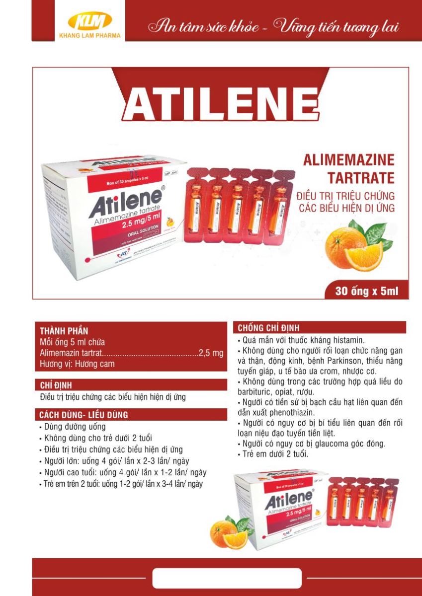 Thuốc Atilene là thuốc chống dị ứng được sử dụng trong điều trị dị ứng hô hấp, viêm kết mạc và ngoài da như ngứa, mày đay,...
