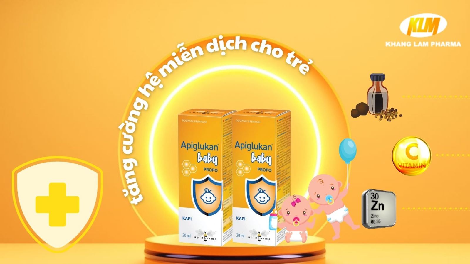 Bên cạnh đó, việc bổ sung các chất tăng cường hệ miễn dịch cho trẻ như Vitamin C, Kẽm… cũng không thể thiếu. Đến từ cùng một nhà sản xuất các sản phẩm từ keo ong, Apiglukan Drops Baby có tác dụng giúp tăng cường sức đề kháng, hỗ trợ tăng cường sức khỏe được sản xuất bởi hãng dược phẩm APIPHARMA, đang nhận được sự tin dùng từ phía nhiều khách hàng và y, bác sĩ.