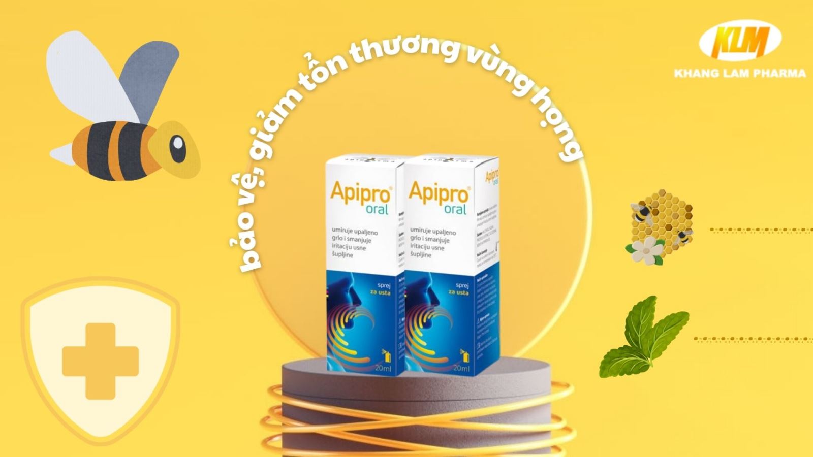 Với chiết xuất keo ong, Apipro Oral là sản phẩm nhập khẩu Châu Âu được sử dụng để làm dịu tình trạng viêm họng, giảm kích ứng ở khoang miệng thường là các triệu chứng do cảm lạnh. Sử dụng Apipro Oral cải thiện triệu chứng do cảm lạnh do thay đổi thời tiết, cảm cúm, nhiễm virus.