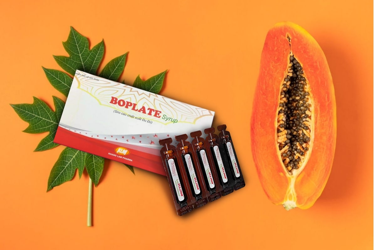 Boplate Syrup chứa thành phần chính là Carica Papaya Extract (cao chiết xuất đu đủ): thành phần này được chứng minh có hiệu quả trong việc tăng tiểu cầu qua các nghiên cứu lâm sàng trên các đối tượng bệnh nhân: Giảm tiểu cầu do hóa trị liệu, sốt xuất huyết, xuất huyết giảm tiểu cầu.