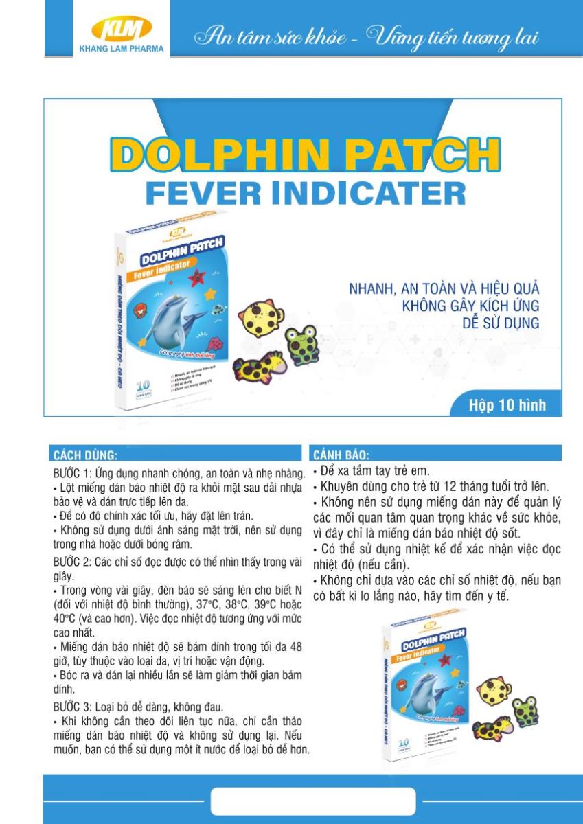Dolphin Patch (Fever indicator) sử dụng công nghệ tinh thể lỏng đóng gói để biểu thị cơ thể của người theo mức tăng 1°C.