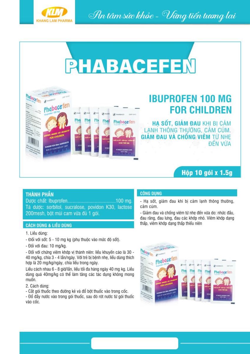 Thuốc Phabacefen có thành phần là Ibuprofen có thể dùng giảm đau hạ sốt đồng thời chống viêm cho bệnh nhân.